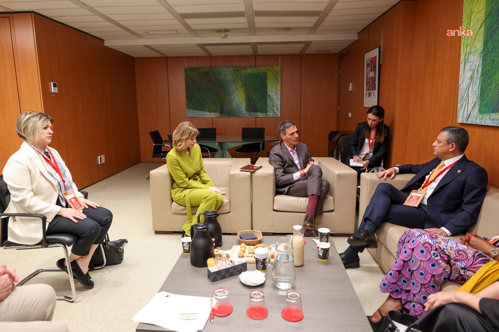 Görüşme toplantının da yapılacağı İspanyol Sosyalist İşçi Partisi Genel Merkezi’nde, heyetlerarası olarak gerçekleşti. Görüşmede, Özel’e; CHP Genel Sekreteri Selin Sayek Böke ile Dış İlişkiler Koordinatörü Şule Erten Bucak eşlik etti. Görüşmede ayrıca, Sosyalist Enternasyonal Genel Koordinatörü Chantal Kambiwa ve Başkan Yardımcıları Hana Jalloul Muro ile Paulina Lampsa da yer aldı.