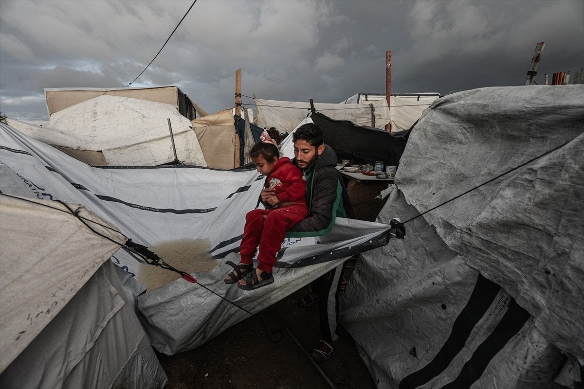 Gazze’de, ateşkese rağmen olumsuz hava koşulları nedeniyle çadırlarda yaşayan halk, hayatta kalmak için mücadele ediyor.