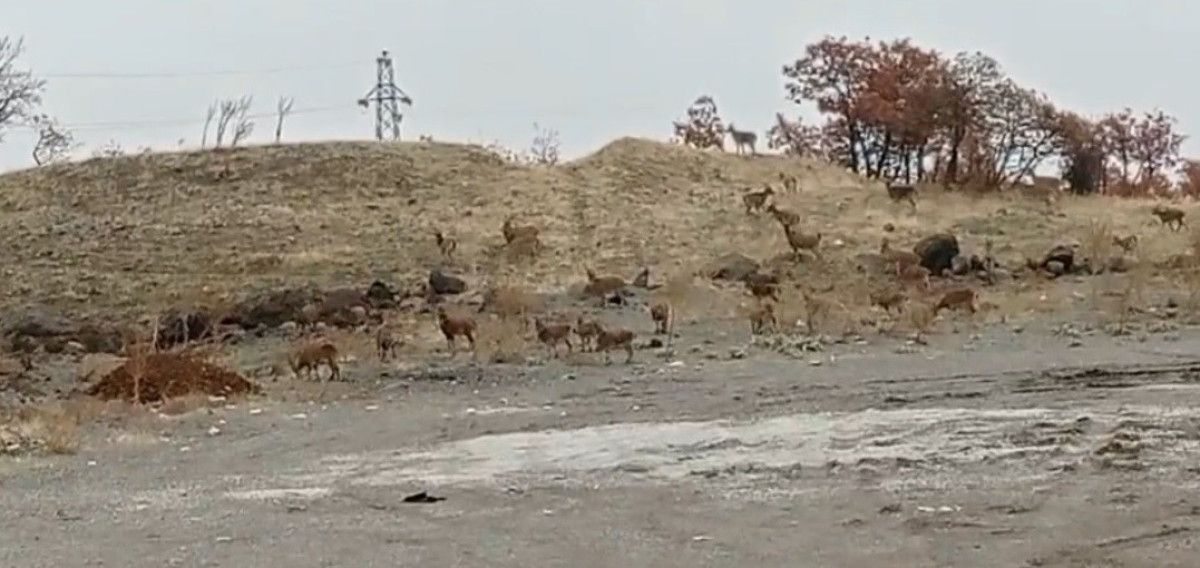 Merkeze bağlı Türüşmek köyü kırsalında, yol kenarında Dünya Doğa Koruma Birliğince (IUCN) yayımlanan ‘Nesli Tükenme Tehlikesi Altında Olan Türlerin Kırmızı Listesi’ndeki yaklaşık 50 dağ keçisinden oluşan sürü, görüntülendi.